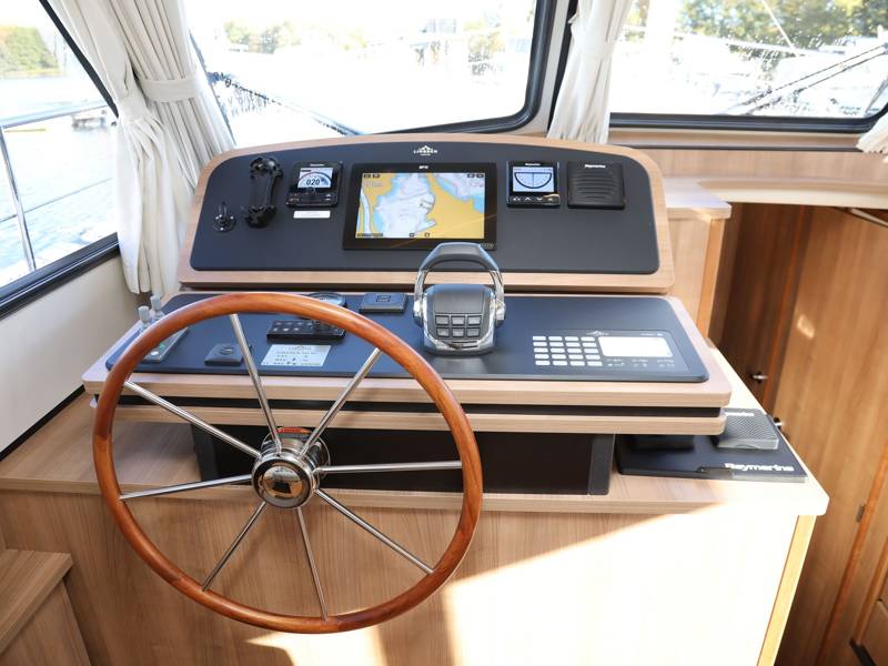 Das Steuer- und Navigationspaket ist umfangreich und mit allen Annehmlichkeiten ausgestattet, darunter Bug- und Heckstrahlruder, Rückfahrkamera, Autopilot, Kartenplotter und alle wichtigen Anzeigen.