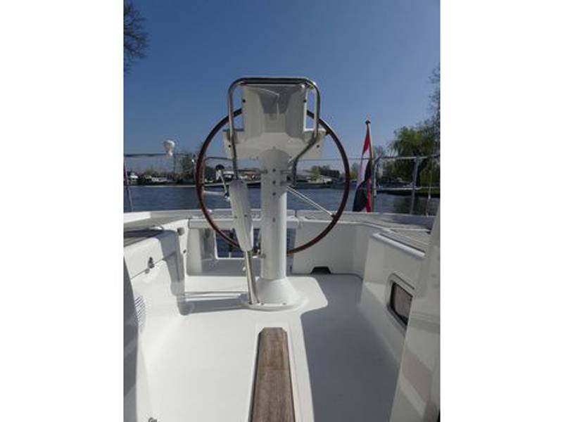 Maindrop-Großsegel (2024), Rollreffgenua (2025), beide können von der Plicht aus bedient werden. Sprayhood, Selbstholende Winschen, Steuerrad, Cockpittisch.