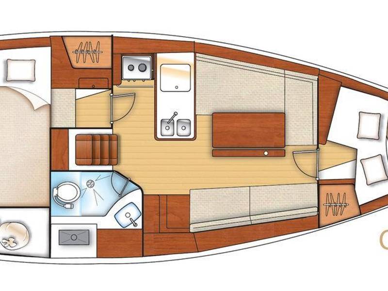 G.P.S.KarteplotterLog / TiefenmesserMarifoon *auf anfrage*KompasElektrisch ankerLandstromanschluss220 volt (Landstrom)Heißluftheizung12-V-AnschlussRadio/ CD spielerKesselToilette (manuel)Douche am deckKühlschrankKaltwasserWarmwasserGasherdMieten Sie die Beneteau Oceanis bei Yachtcharter Hospes!