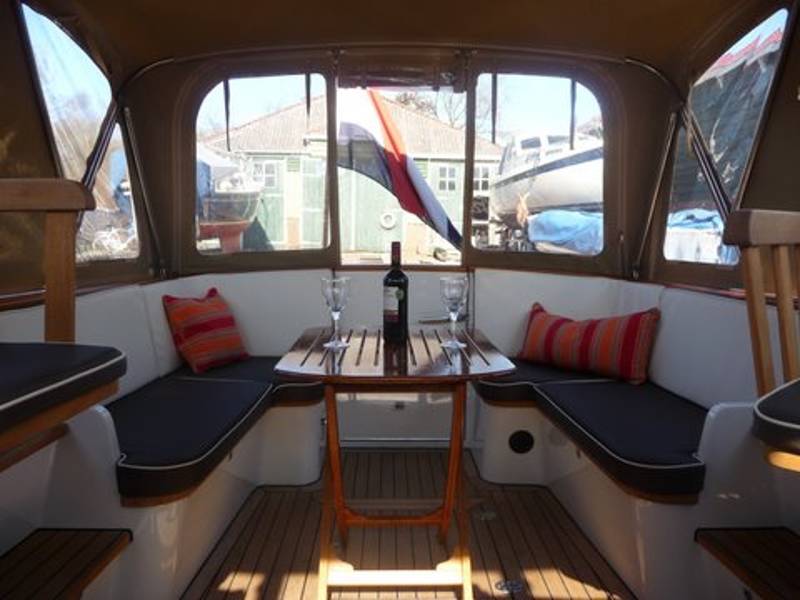 Die Plicht ist mit einer Heißluftheizung und LED-Beleuchtung ausgestattet, so dass Sie auch bei weniger gutem Wetter weiterhin fahren und genießen können. Die Plicht ist selbstlenzend, verfügt über viel Stauraum und einen Landstromanschluss.