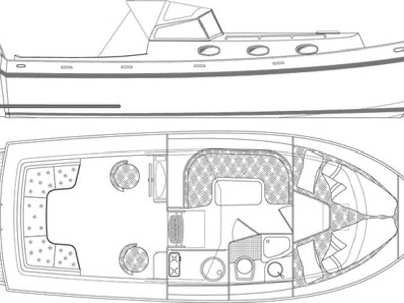 Einzigartig an dieser Yacht ist die große offene Plicht mit 2 Steuersitzen, gemütlichem Rundsofa und luxuriösem Cabrioverdeck. Durch die Tür im Heckspiegel gelangen Sie bequem auf die Badeplattform mit Badeleiter und Dusche mit Warm- und Kaltwasser.