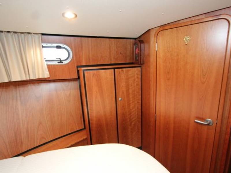 Geräumige Eignerkoje mit viel Stauraum im Schrank und einem bequemen Doppelbett (1,60 x 2,00 m).